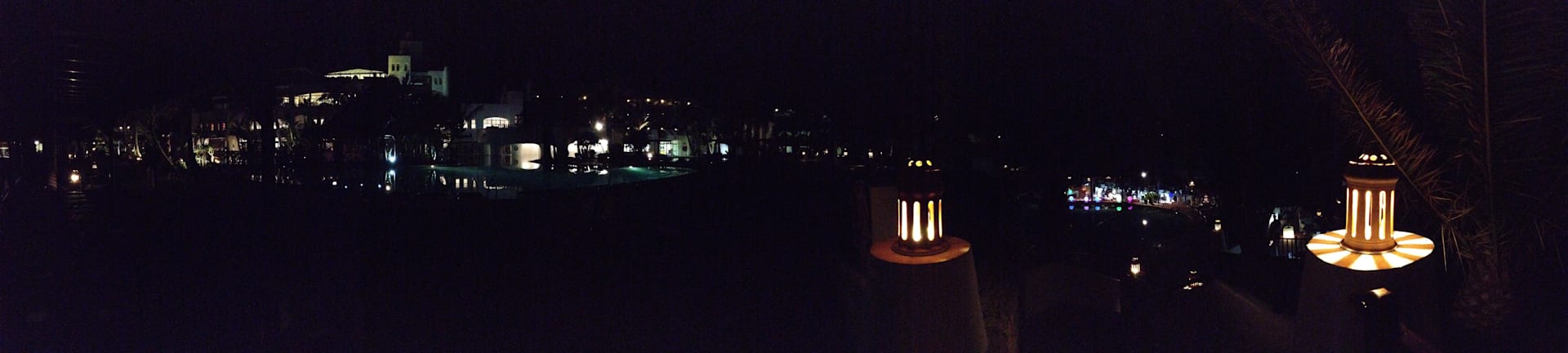 Bei NachtPanoramabild von Hauptpool, Coco-Loco-Bar und Chill-out-Bar