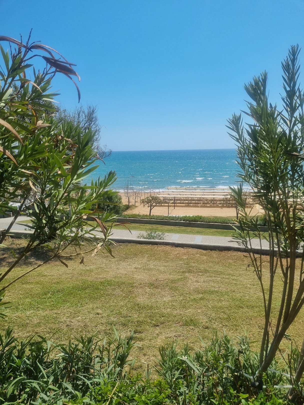Blick von der Strandbar auf die Liegestühle