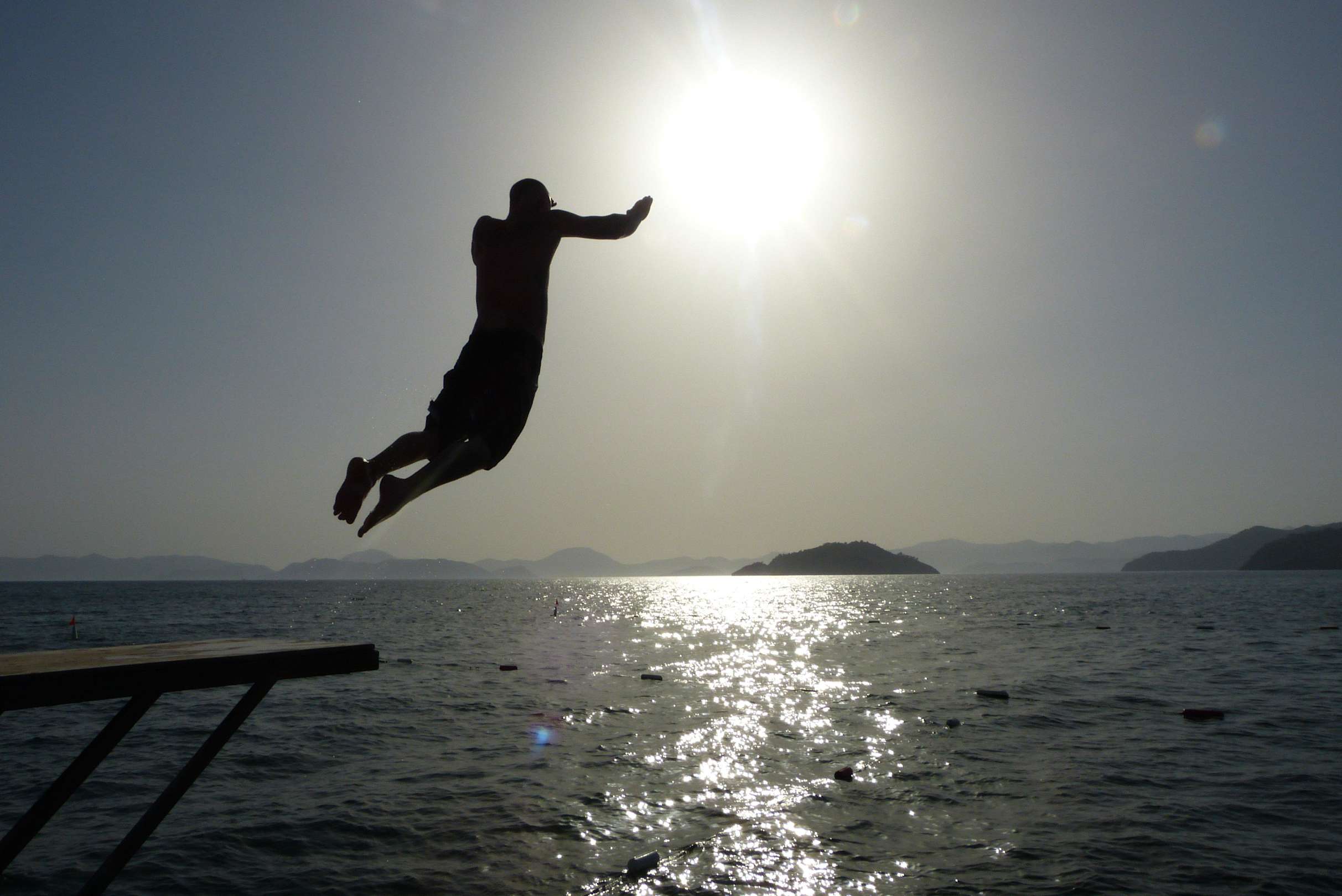 Sprung vom Bootssteg in den Sonnenuntergang