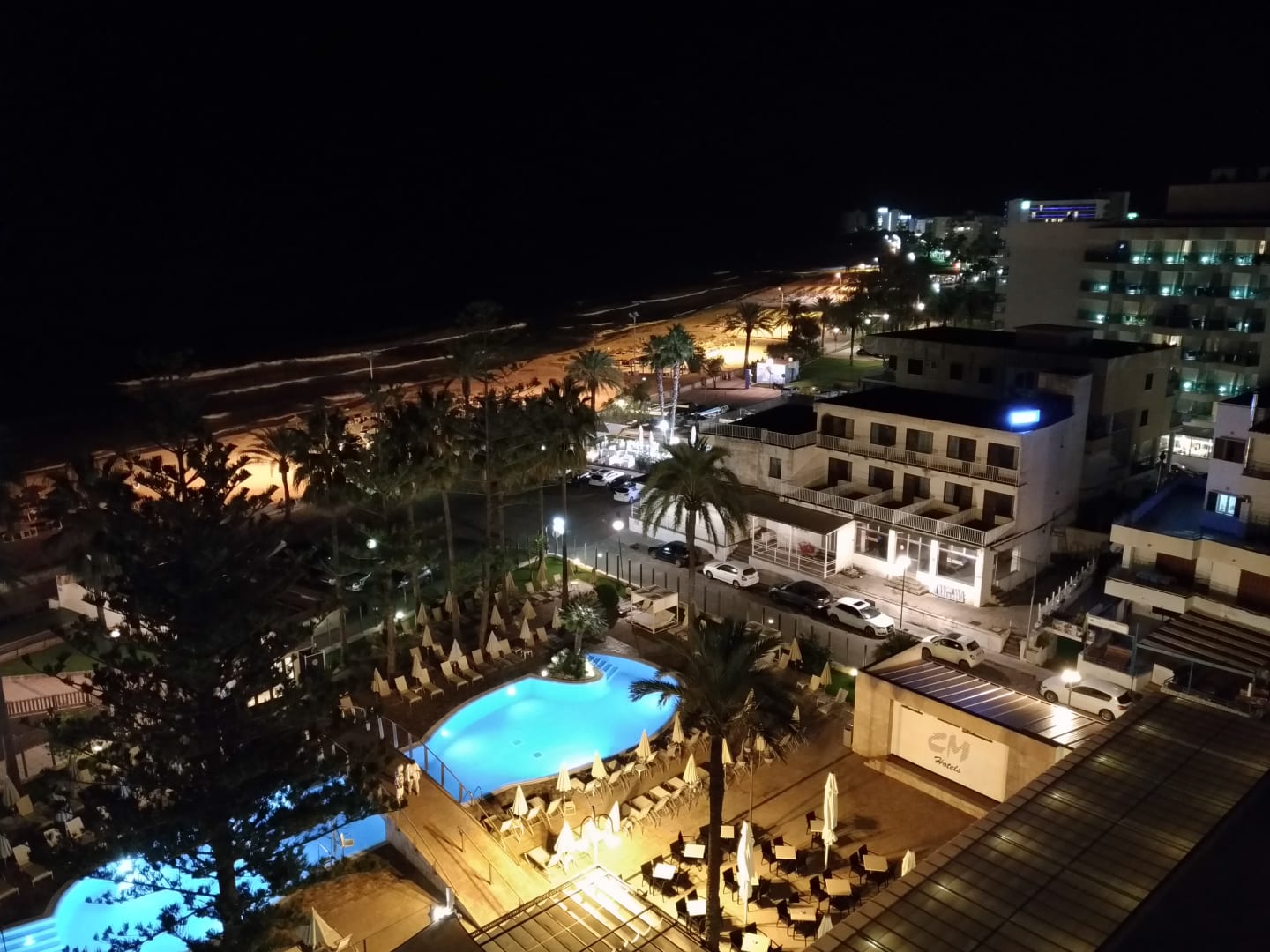 Nachtausblick vom 7.Stock zum Pool und Meer