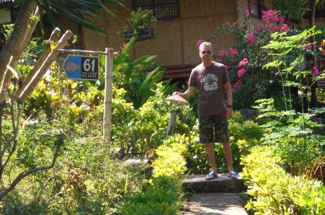 Reichlich Natur um die einzelnen Bungalows. Palmen, Blumen und andere schöne Pflanzen.