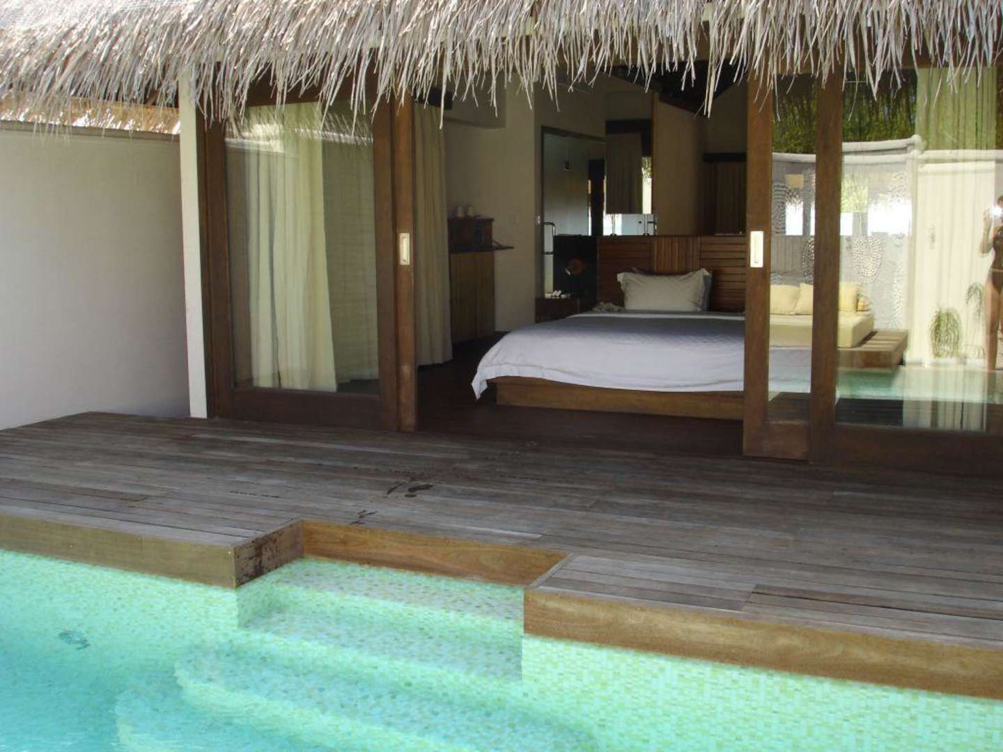 Blick vom Pool ins Schlafzimmer