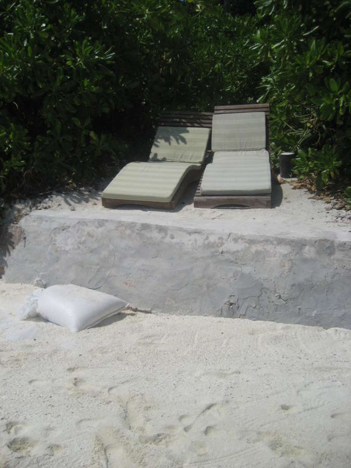 Vor dem Garten die Sonnenliegenan der Mauer.Manchen Leuten gefällt es!!??