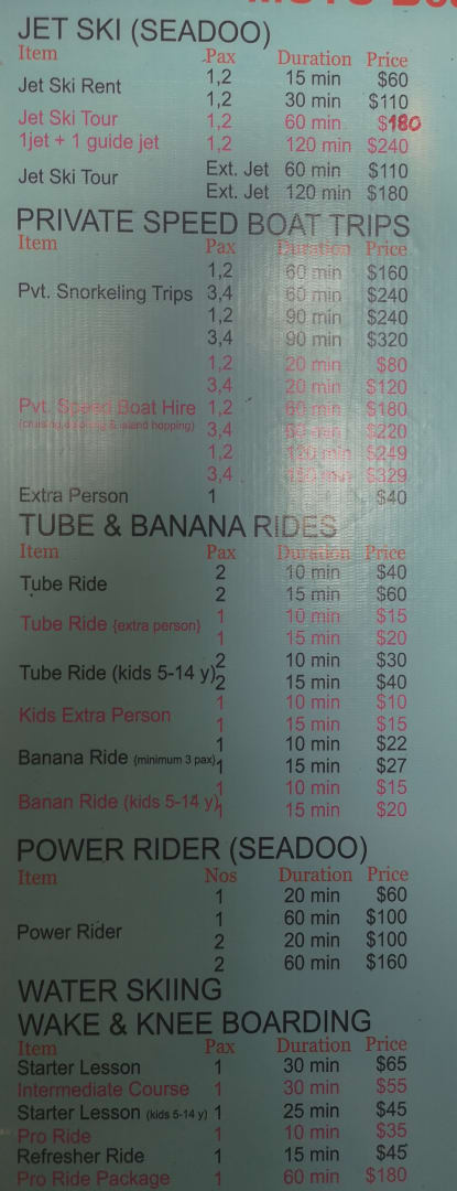 Preisliste Wassersport Anbieter