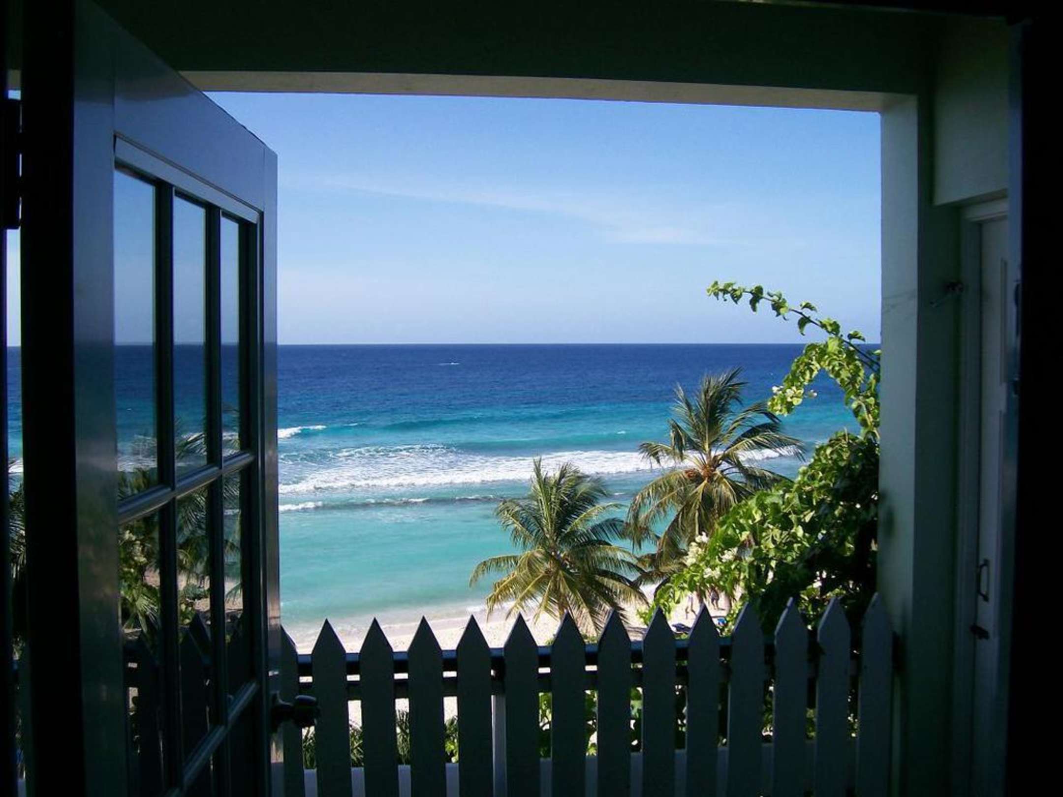 Der Ausblick von unserem Zimmer Nr. 87 auf das Meer und den Strand