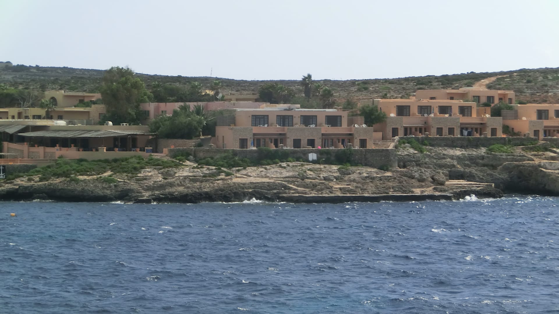 Comino Bungalows vom kleinen Strand auf der linken Seite der Santa Marija Bay aus.