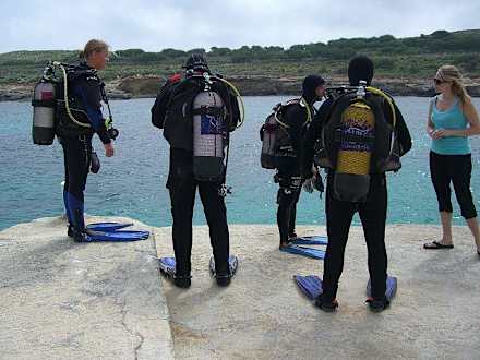Taucher an der Anlegestelle
