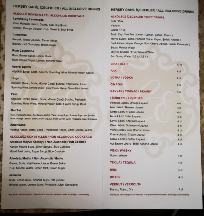 Die Getränkekarte an der Lobbybar.