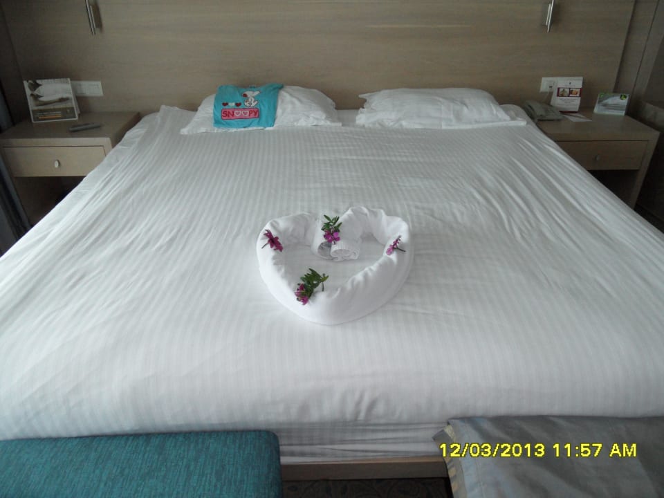 Bettdekoration vom netten Zimmermädchen