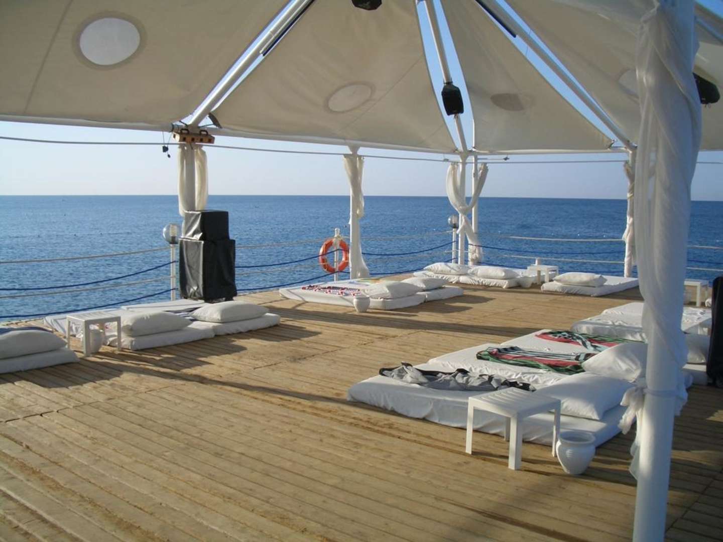 Ein Teil des Steg mit Matratzen.