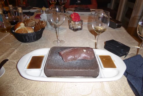Filet vom heißen Stein im Restaurant am Strand...