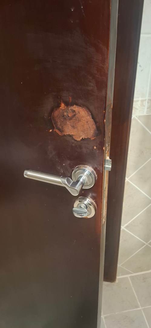 " reparierte" abgeranzte Tür...die auch mal komplett geputzt werden müsste, voller Spritzer
