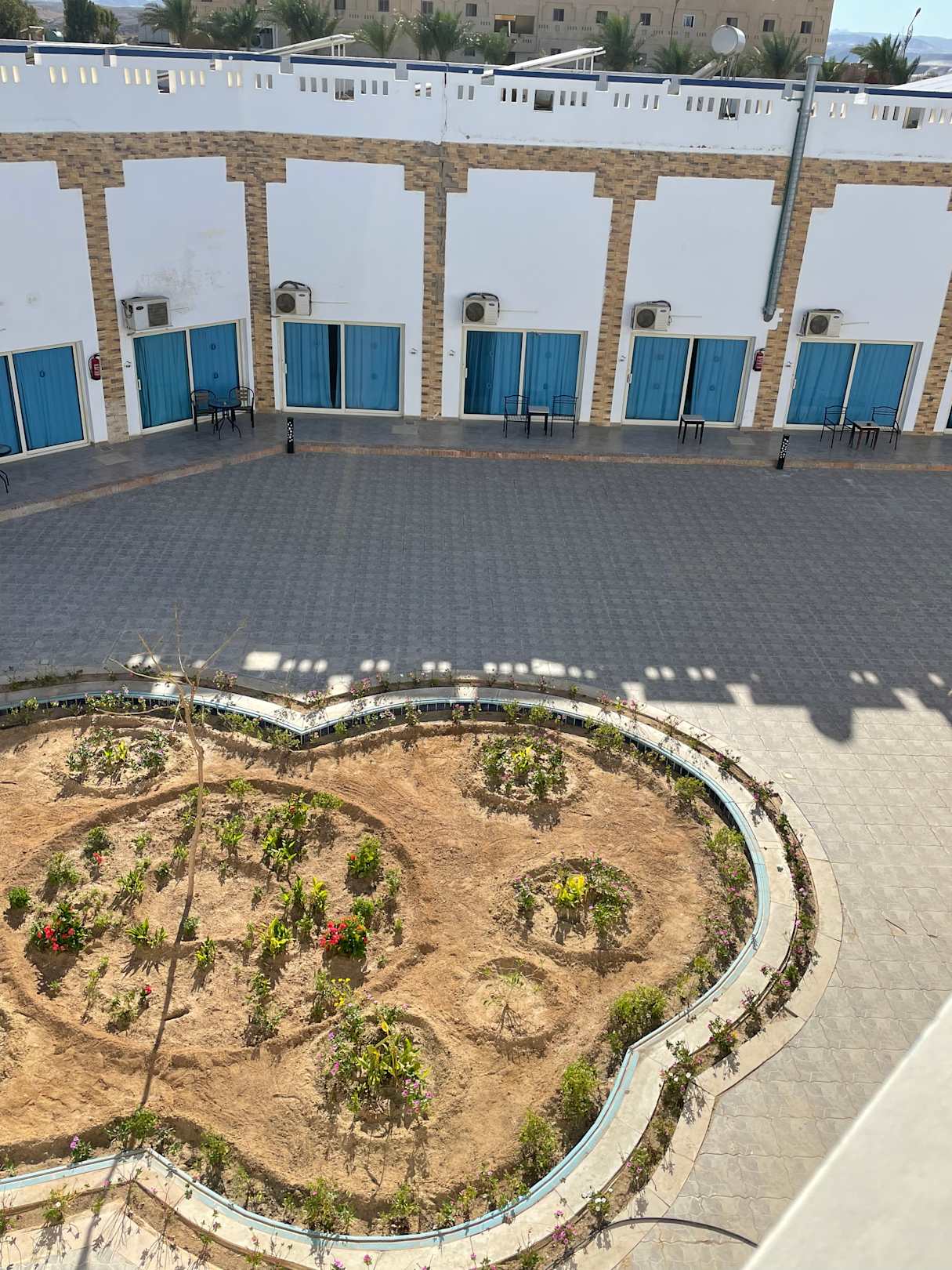 Das sind die Zimmer ohne Meerblick, das ist wirklich nicht so toll, man sitzt quasi in einem trostlosen Innenhof. Also bitte immer Zimmer mit Meerblick buchen, sonst landet man im Innenhof.:-(