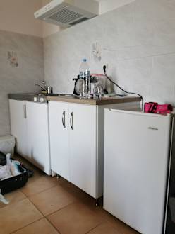 ZimmerGruselkitchenette im Zimmer 303. Selbst Einsterne- Studios sind saubeter und vollständiger ausgerüstet.