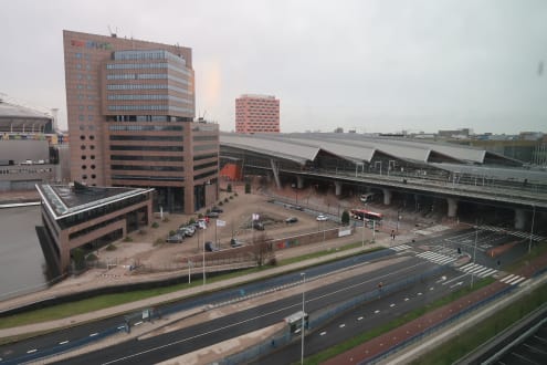 Ausblick vom Flur auf den Bahnhof Bijlmer Arena