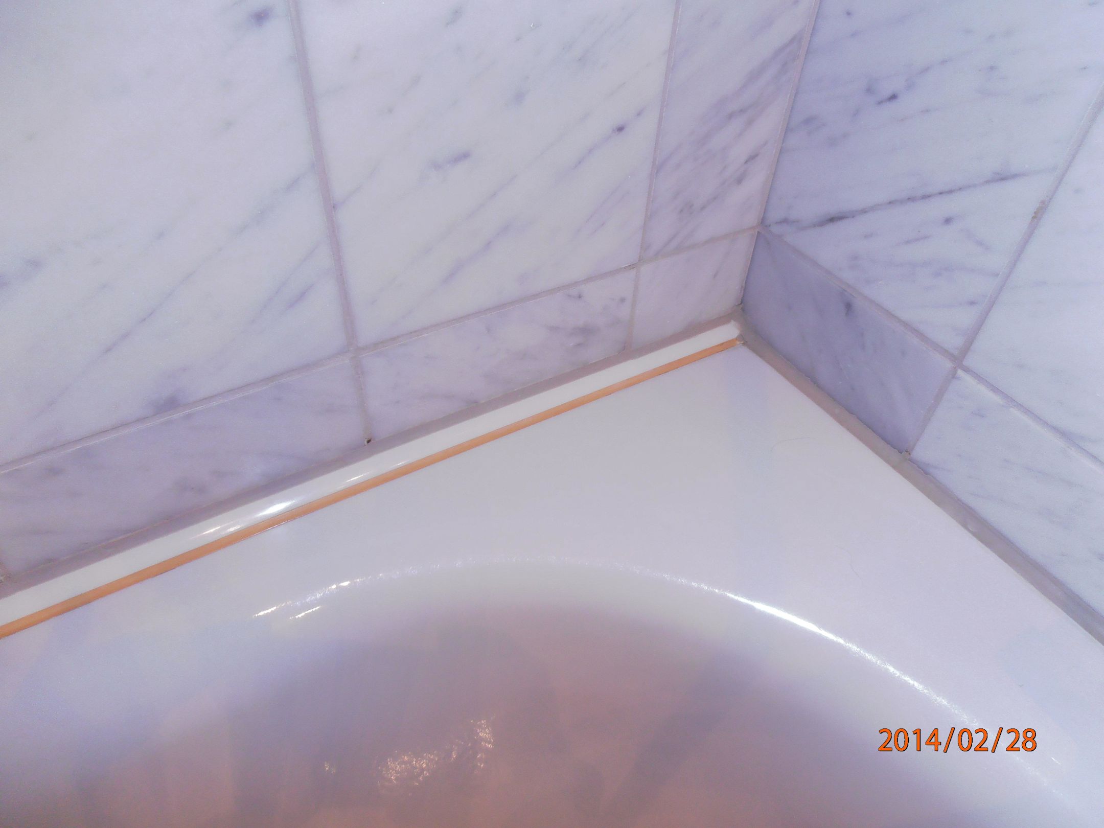 Gelbe Silikonfuge an der Badewanne