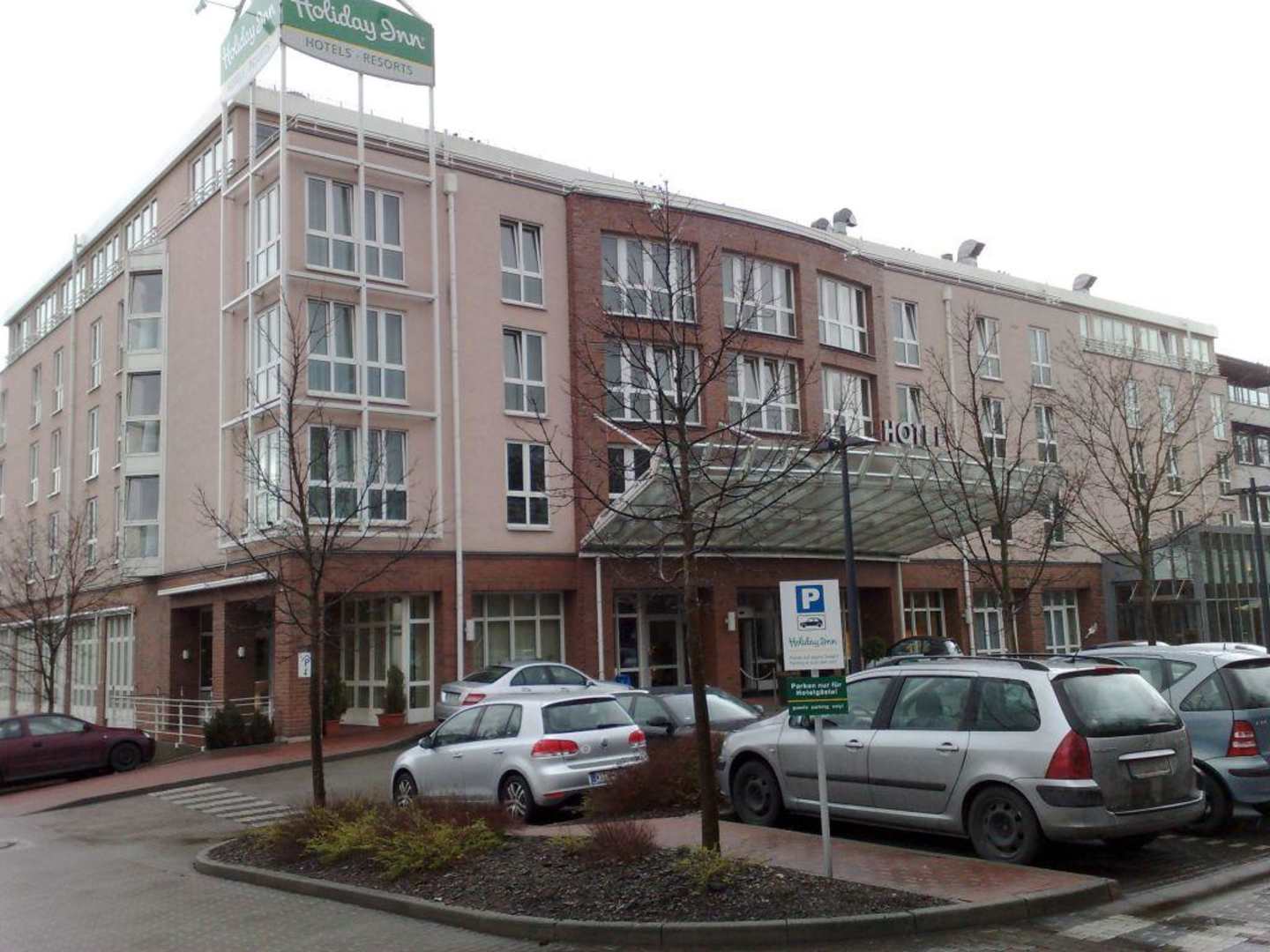 Hotelansicht von der Strasse ausDer Parkplatz und der Haupteingang des Hotels von der Staffenbergallee aus gesehen