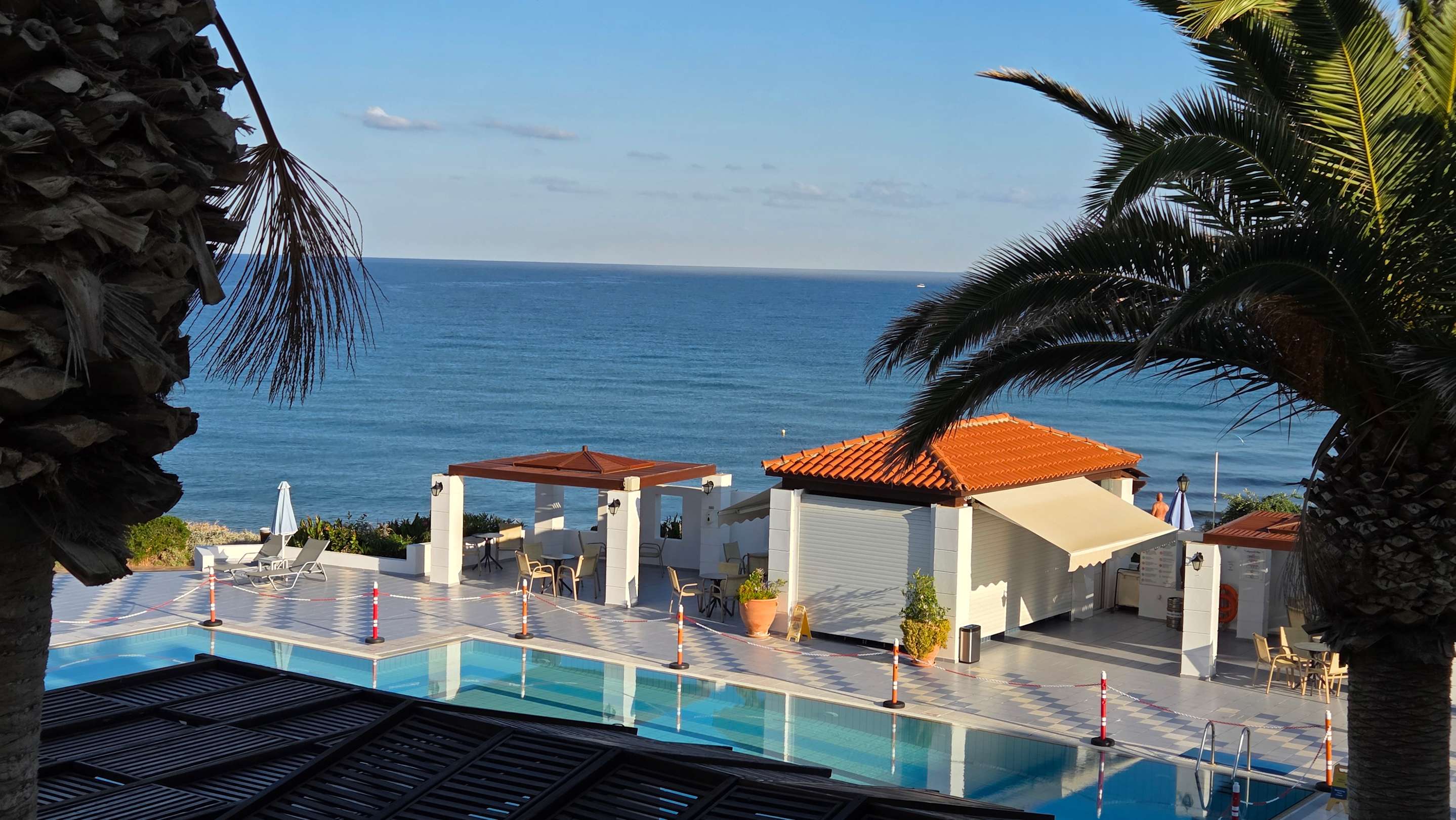 Blick auf Pool und PoolBar, sowie Strand