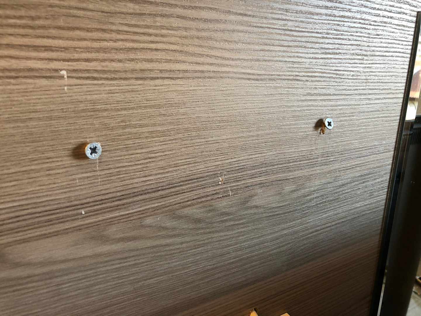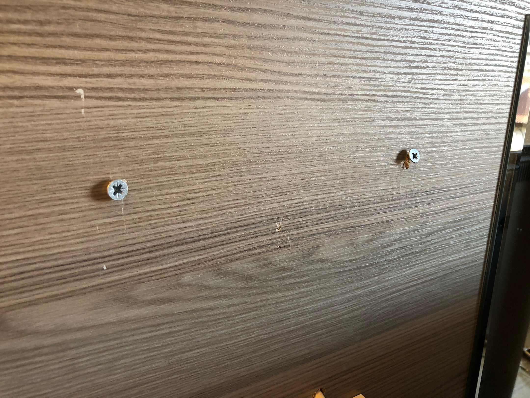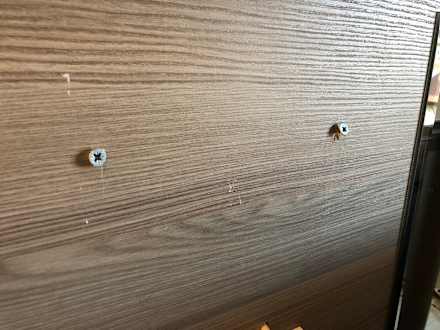 Schrauben stehen aus der Wand vor, Verletzungsgefahr.