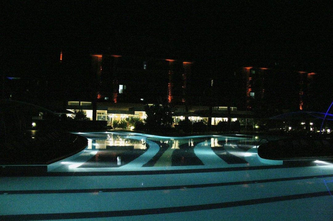 Poolanlage bei Nacht mit Blick auf das Hotel Crystal Family Comfort Collection