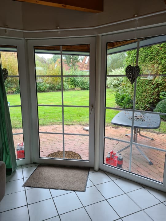 Aussicht vom Wohn/Esszimmer in den Garten