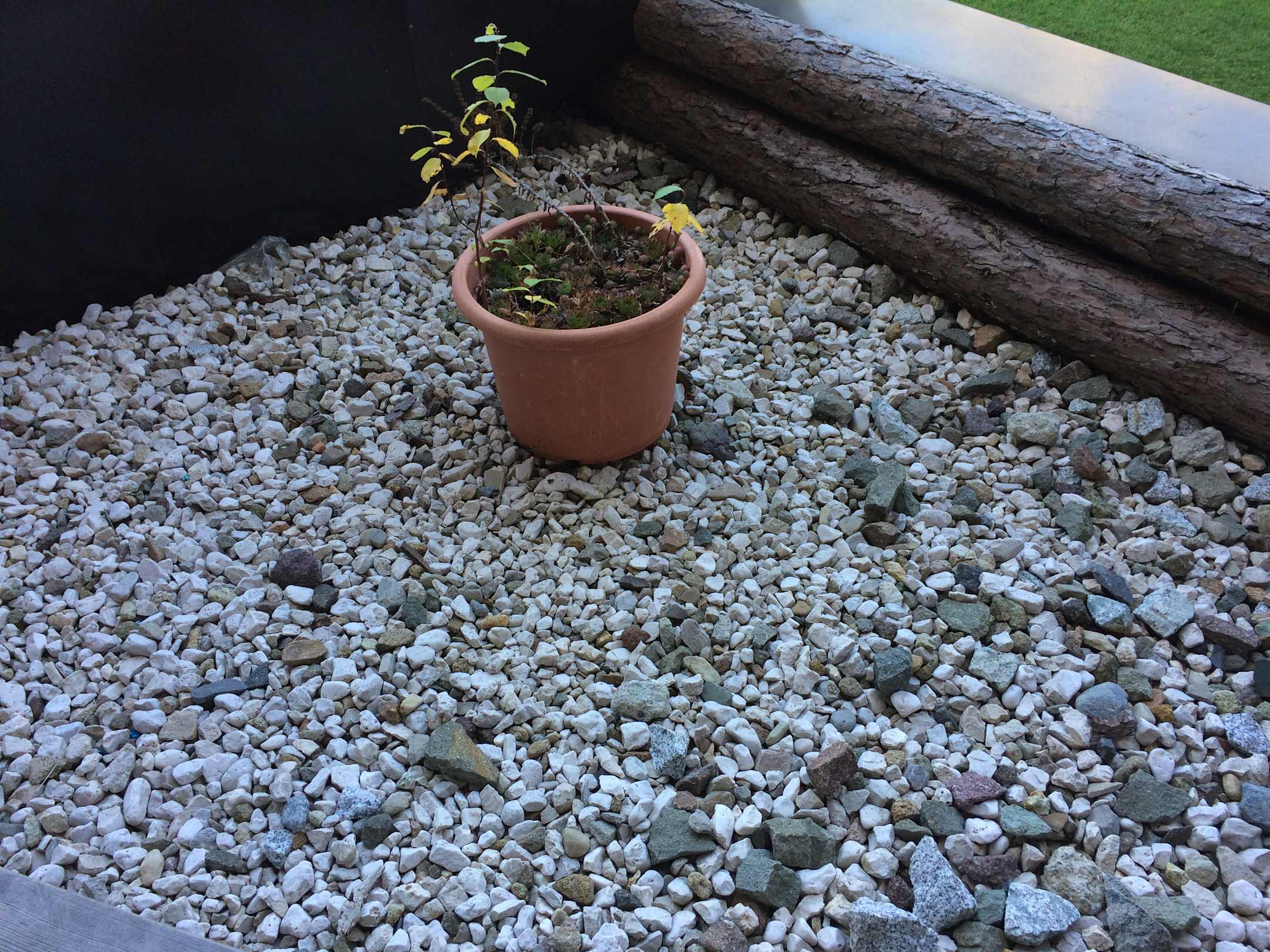 Es wurde versucht den Ausblick auf die zentrale Lüftungsanlage mit einem Blumentopf zu "verschönern"