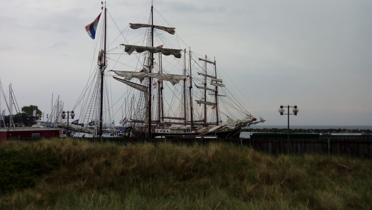 Zu Fuss zum Hafen sind es max. 5 Minuten. Tolle Schiffe, super Luft alle sind entspannt.