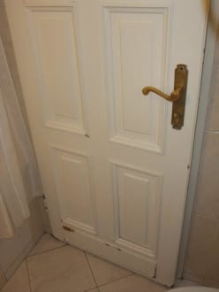 Beschädigte Tür zum Bad