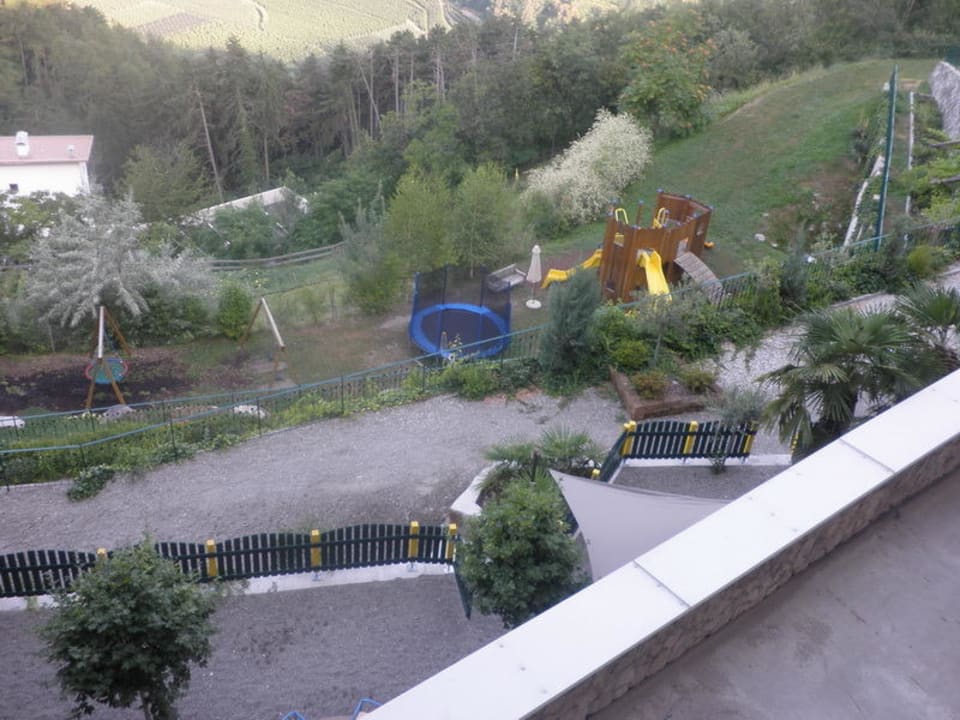 Blick von der Terrasse auf den Spielplatz