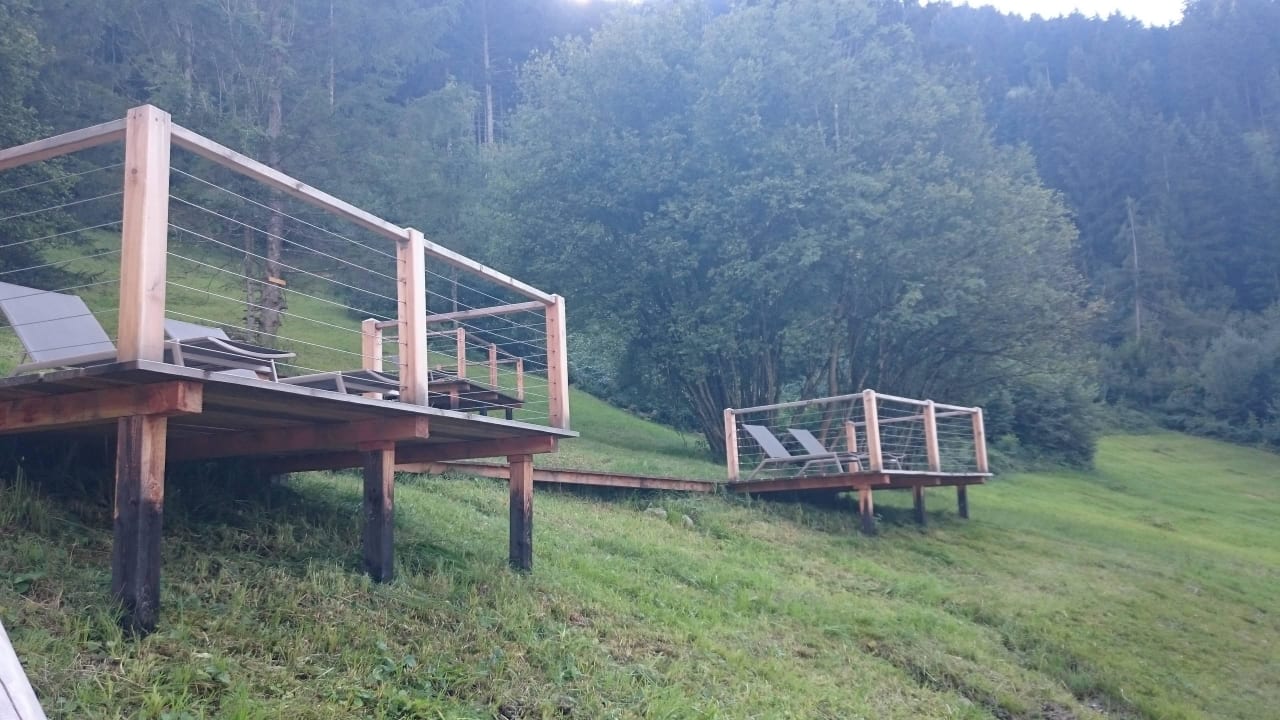 Relaxen im Garten auf Holzterrassen mit Liegen