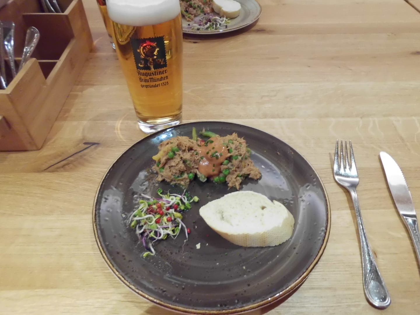 Eine Vorspeise. (Thunfischsalat mit Weißbrot)