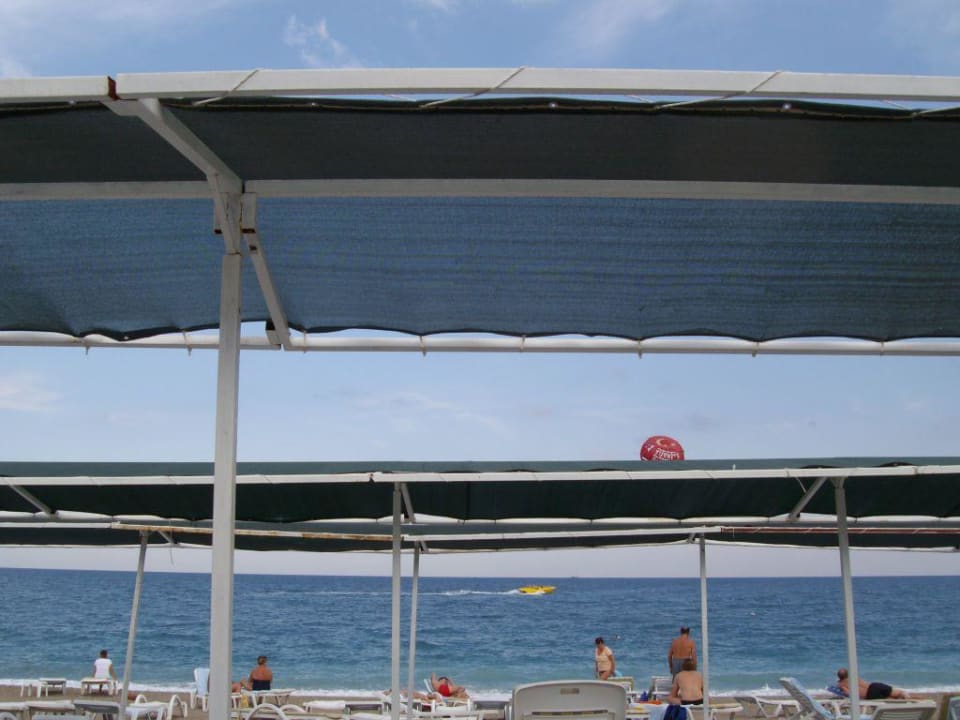 SonnenschutzvorrichtungDiese Schonnenschutzkonstruktionen fanden wir statt der üblichen Sonnenschirme am hoteleigenen Strand des Kemer Reach Hotels.
