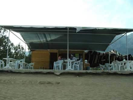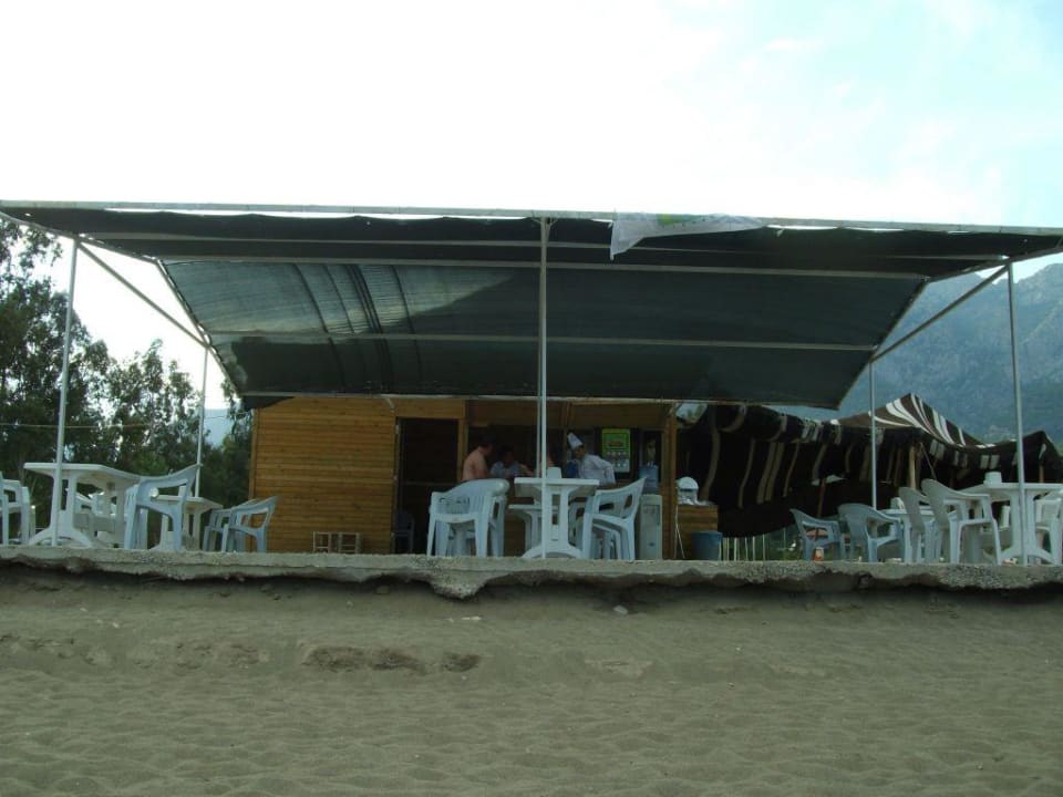 Achtung Stolperfalle! Strandbar mit Sitzgelegenheiten.