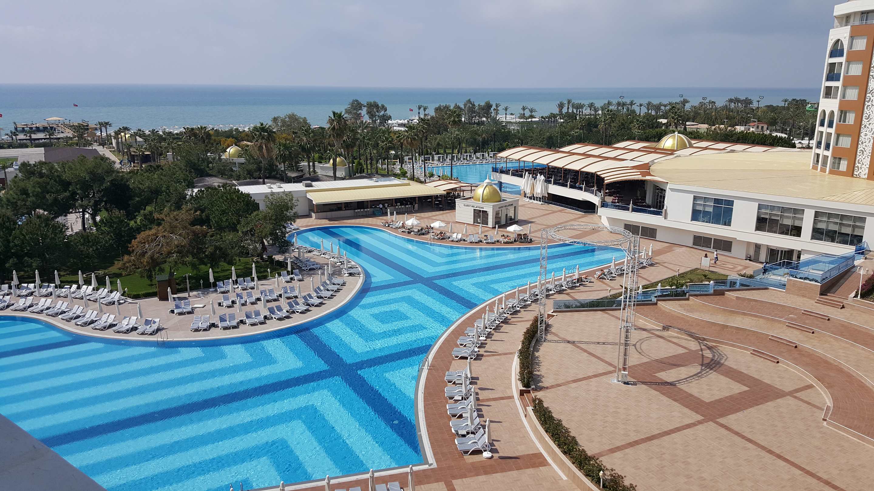 Blick auf zwei (eigentlich drei - Angrenzug jedoch schwer zu erkennen) der Pools, wobei einer sogar in der kühleren Jahreszeit beheizt ist.