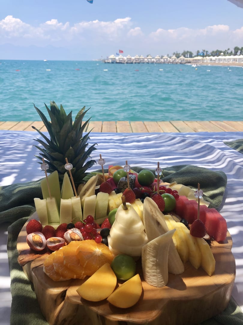 Blick aus der Cabana . Liebevoll zubereiteter Obstteller ist im Mietpreis inbegriffen !