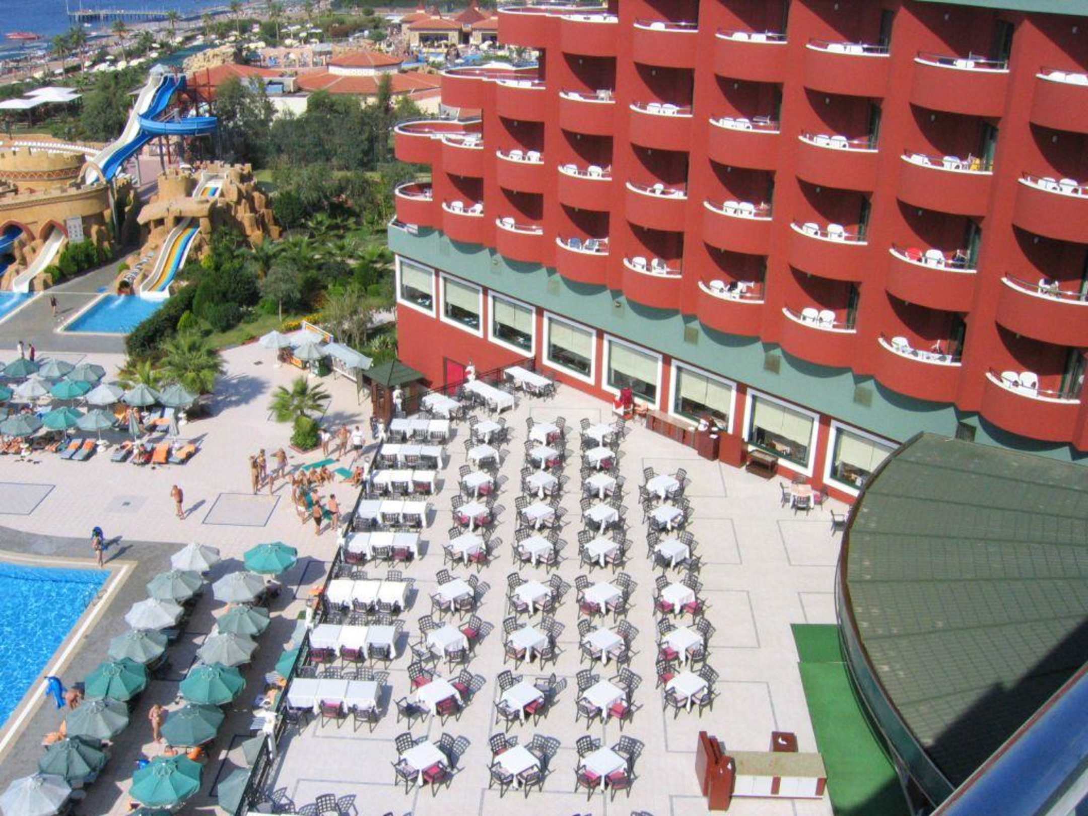 Blick auf Restaurant-Terasse Delphin Deluxe Resort Karaburun