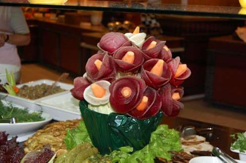 geschnitzte Blumen aus Gemüse als Buffet-Dekoration
