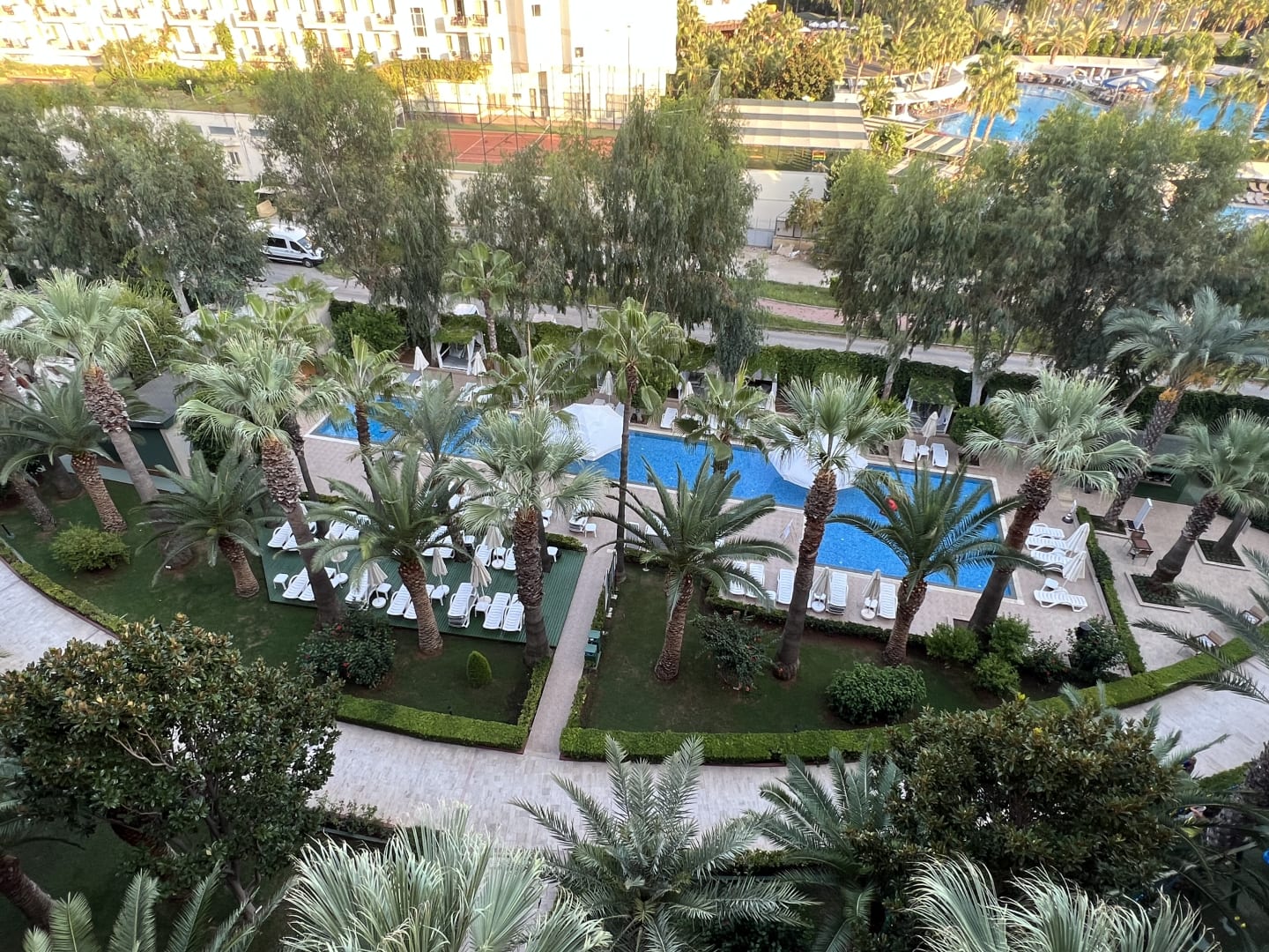 Blick auf den Kinderpool im Schatten