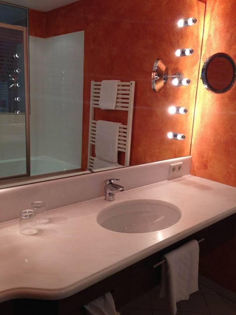 Schönes Bad mit viel Fläche.