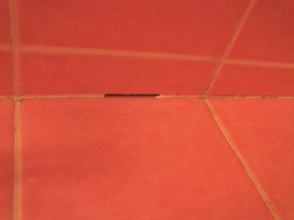 Löcher und Schimmel in den Fugen im Bad.