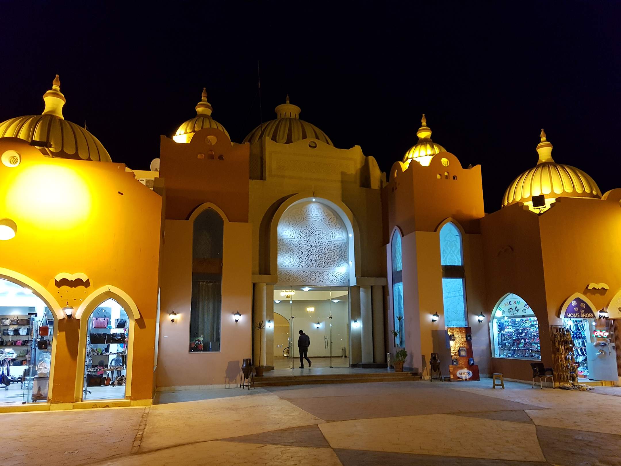 vor dem Hotel beim Shopping