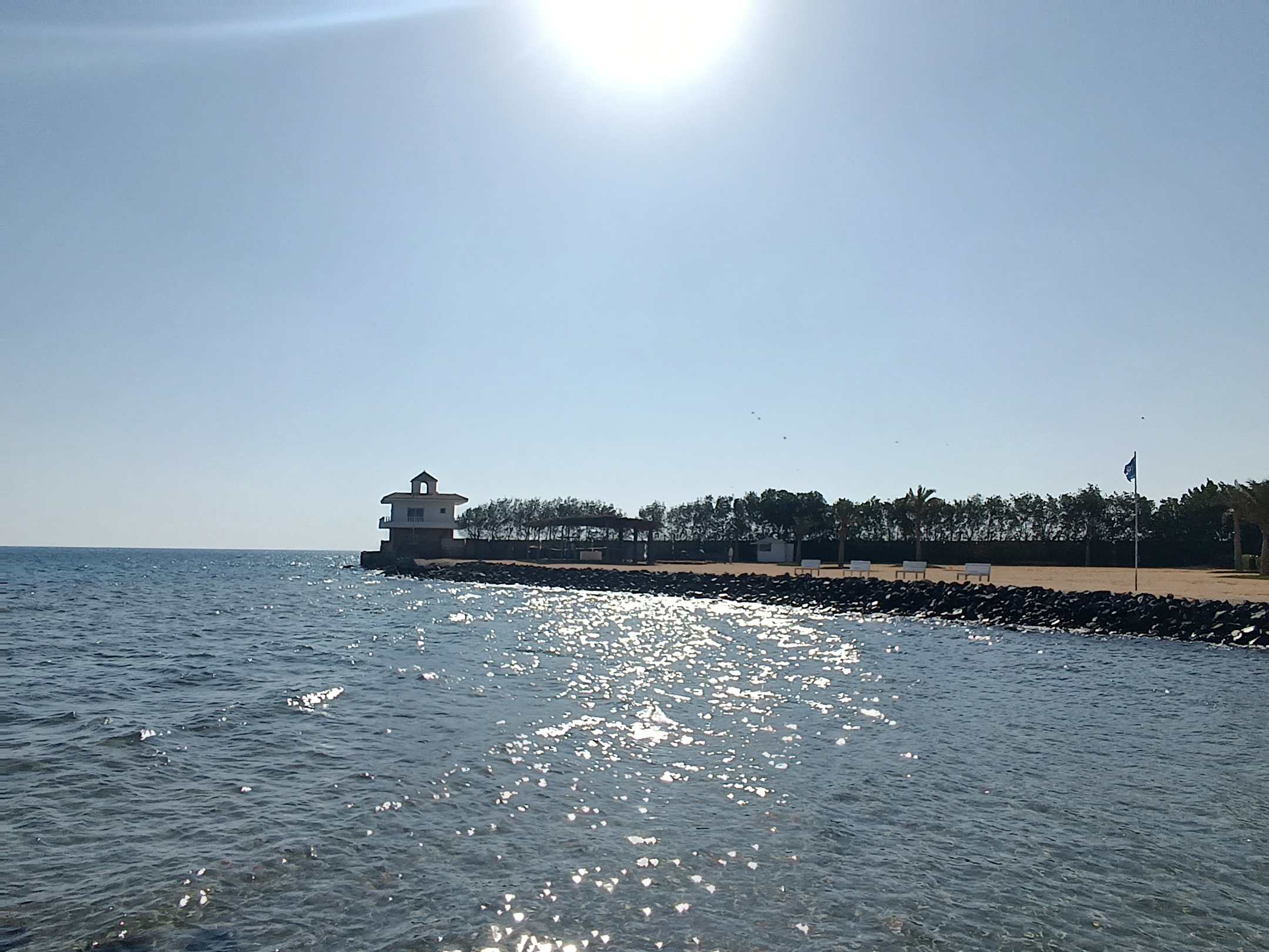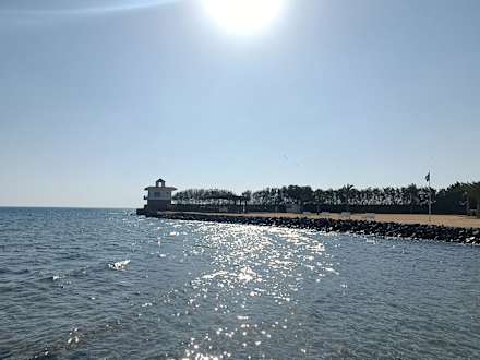 Vorderer Strandabschnitt am offenen Meer.