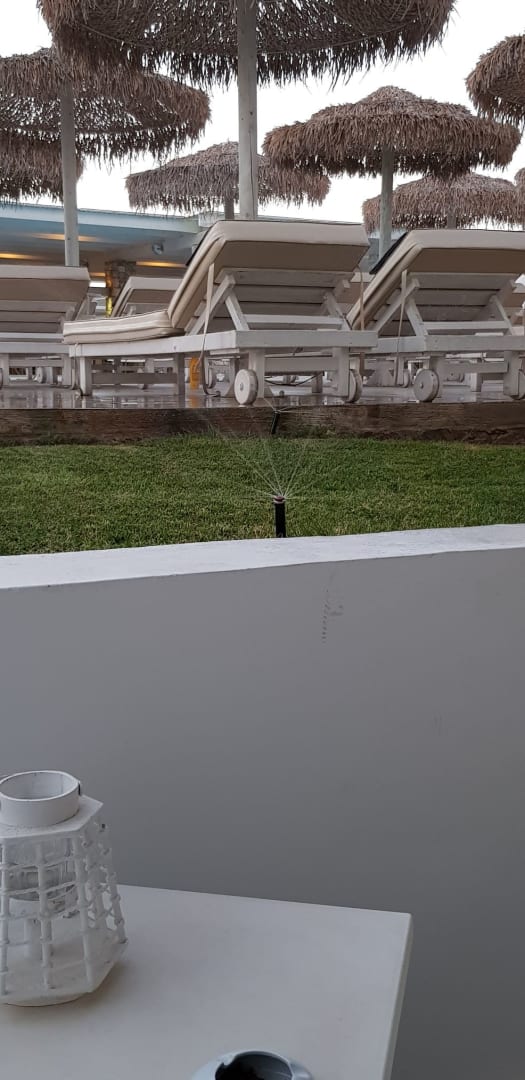 AusblickDer "Meerblick" von unserem Superiorzimmer mit integrierter Augendusche über Rasensprenger