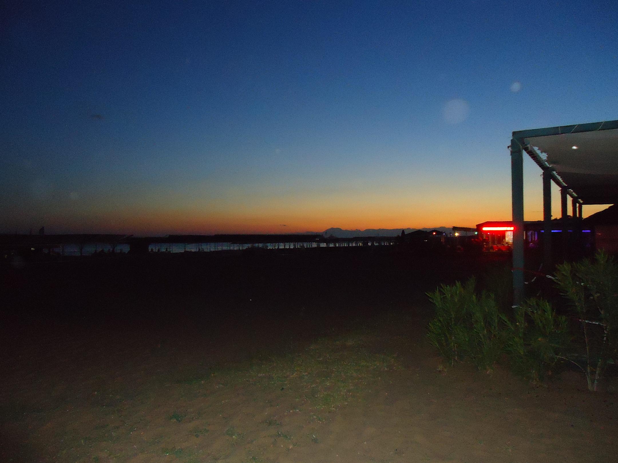 Sonnenuntergang am sehr schönen Hotel-Strand