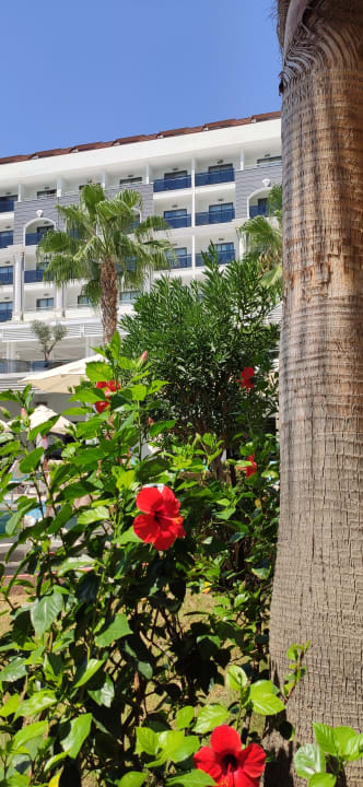 Schöne Hibiskussträucher säumen die gesamte Anlage