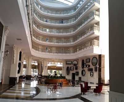 Der SpiegelsalonWenn man nach der Rezeption rechts durch die Glastür geht, befindet man sich im "Spiegelsalon", dort befindet sich auch ein Bar und man gelangt auf die Terrasse über dem Pool