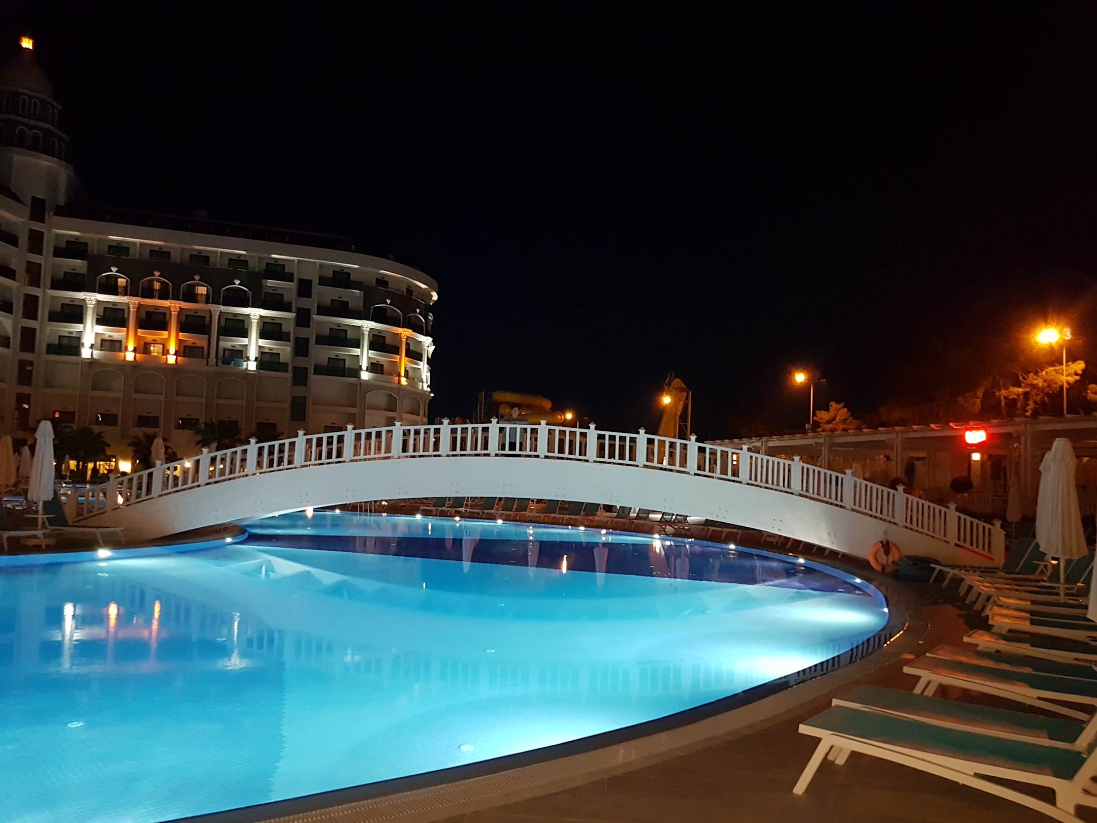 Schöner Pool am Abend beleuchtet