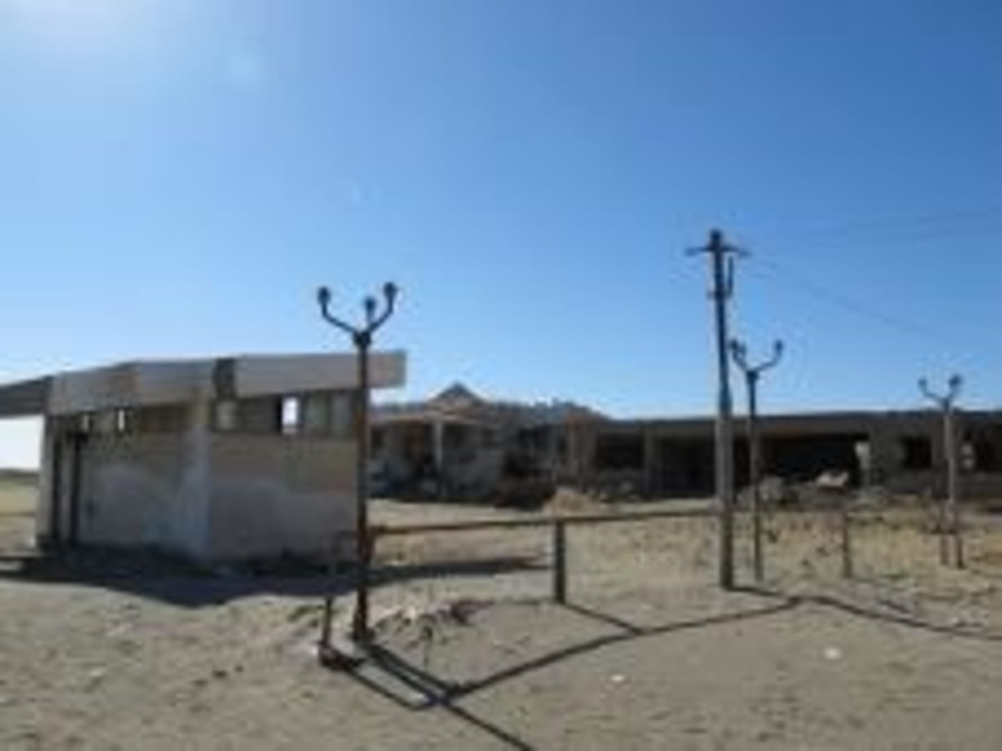 Im Vordergrund die Pumpstation, im Hintergrund links (neben dem Rohbau) die Villa