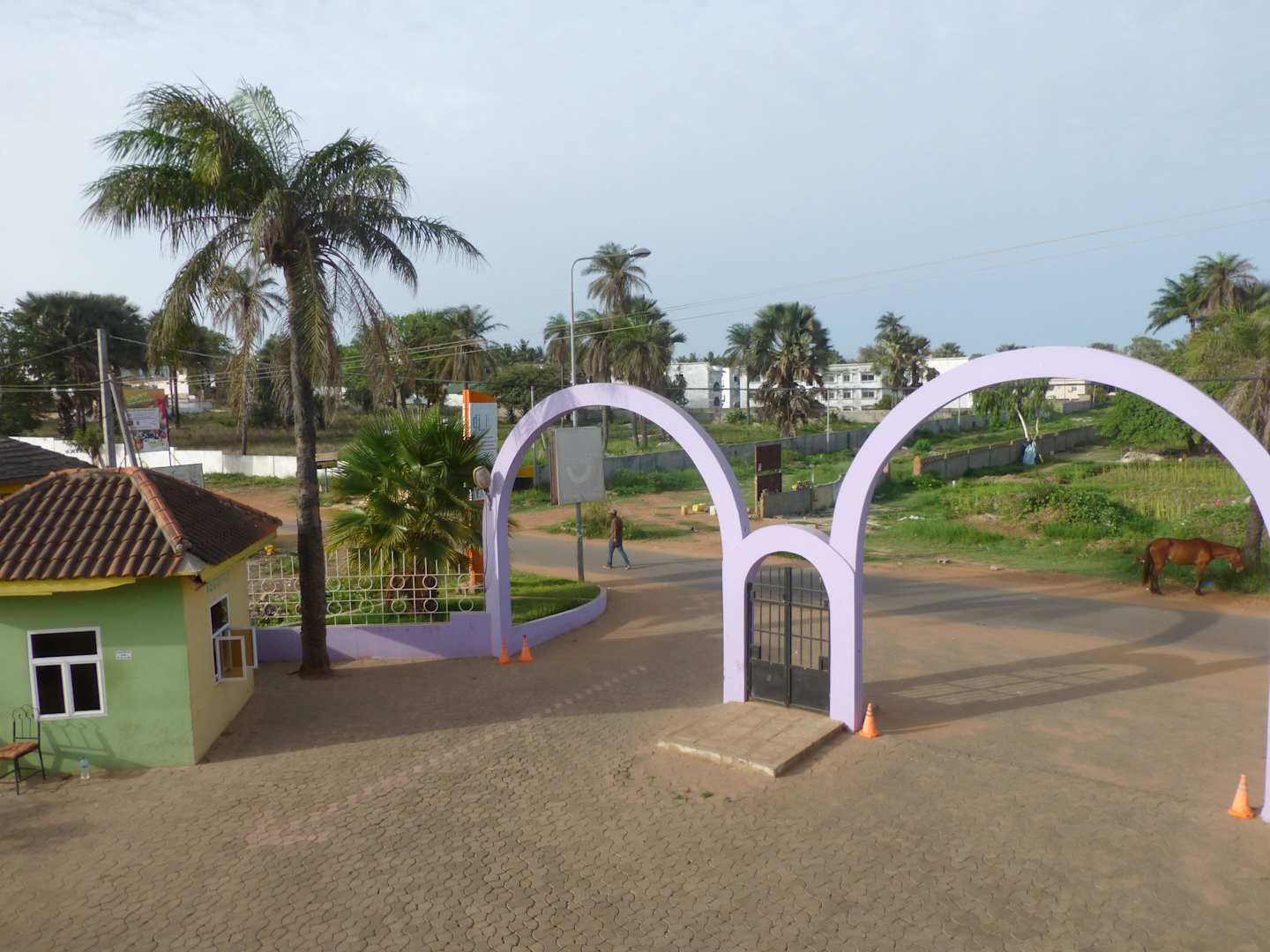 Eingang ins Hotel, links das Wachhäuschen