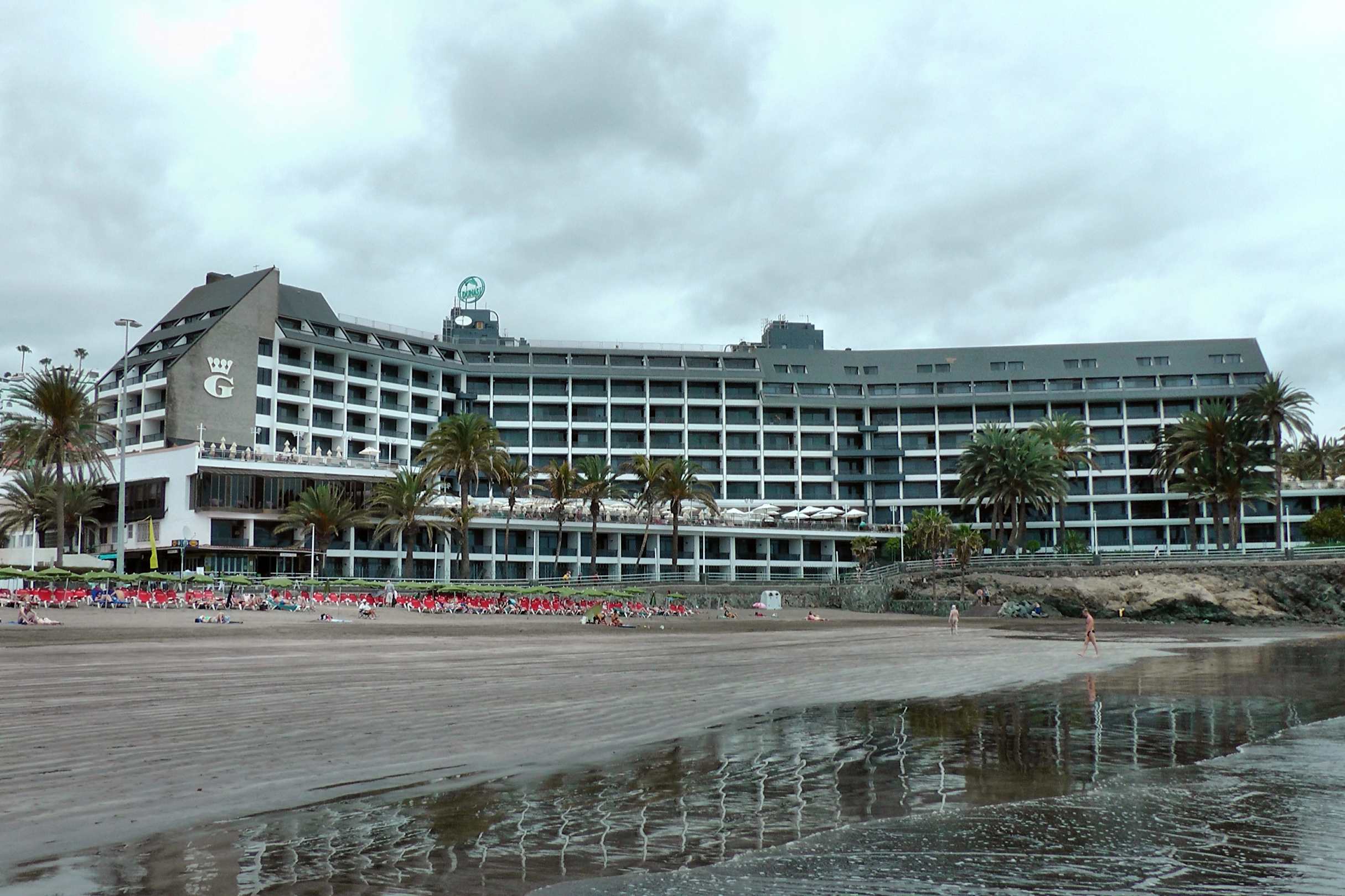 Der Blick vom Strand zum Hotel